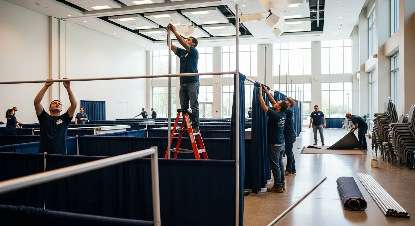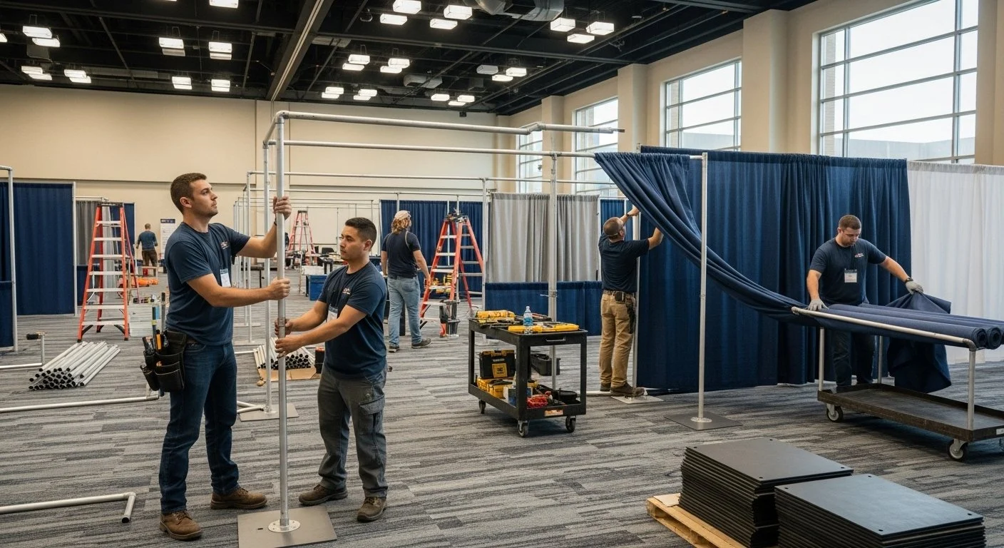 Define your space and add a professional finish with our pipe and drape rentals. Ideal for dividing exhibit halls, creating private meeting areas, or adding elegant backdrops, our drape systems are fully adjustable and available in multiple colors and heights. Use them to enhance your event’s flow, conceal service areas, or build branded displays that make your organization stand out.