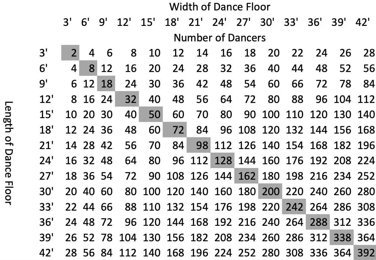 Dance Floor Sizing Chart